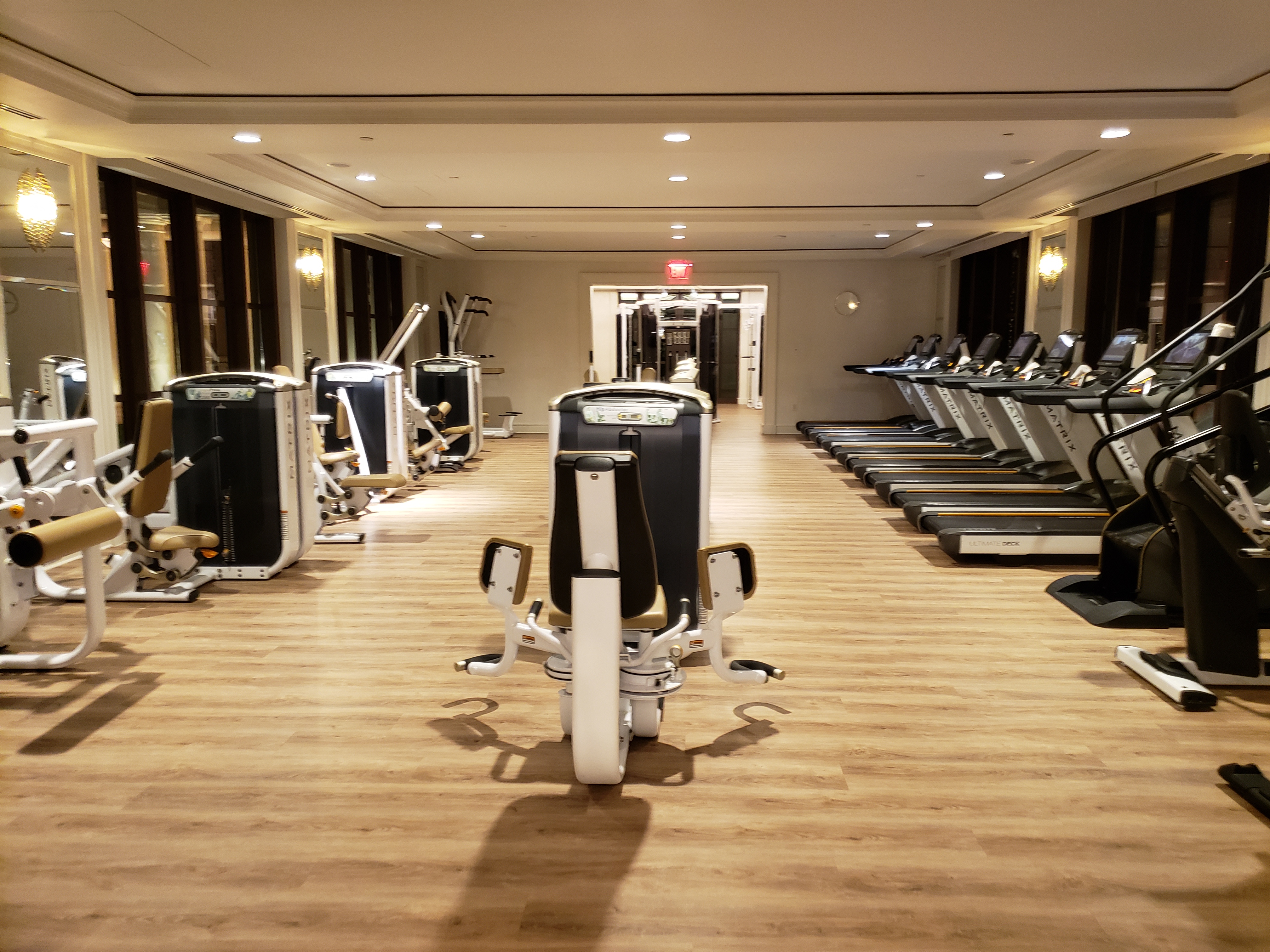 As self-proclaimed fitness studio junkies, we were very excited to see the gym here. The first thing that set it apart was its size. It had three sections all in a spa-like atmosphere. They had cardio machines that included elliptical, treadmills, indoor cycle bikes, and gauntlets. For weight training and functional exercise, they have everything from machines to dumbbells, kettlebells, bosu balls, they even have boxes if you wanted to get some box jumps in. The windows looked out over the beautiful grounds. You could do days of workouts with plenty of room and variety.